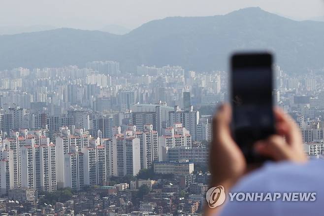 (서울=연합뉴스) 강민지 기자 = 추가 금리 인상 예고와 집값 하락세로 이번주 서울 아파트 매매수급지수는 지난주(80.2)보다 낮은 79.5를 기록하며 지수 80선이 무너졌다. 사진은 23일 서울 남산에서 본 서울 아파트. 2022.9.23