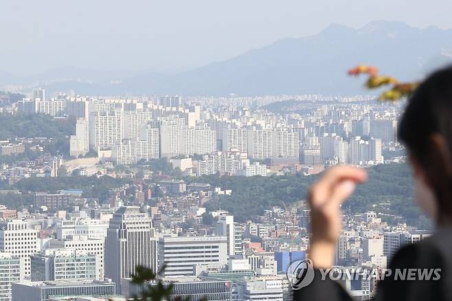 (서울=연합뉴스) 강민지 기자 = 추가 금리 인상 예고와 집값 하락세로 이번주 서울 아파트 매매수급지수는 지난주(80.2)보다 낮은 79.5를 기록하며 지수 80선이 무너졌다. 사진은 23일 서울 남산에서 본 서울 아파트. 2022.9.23