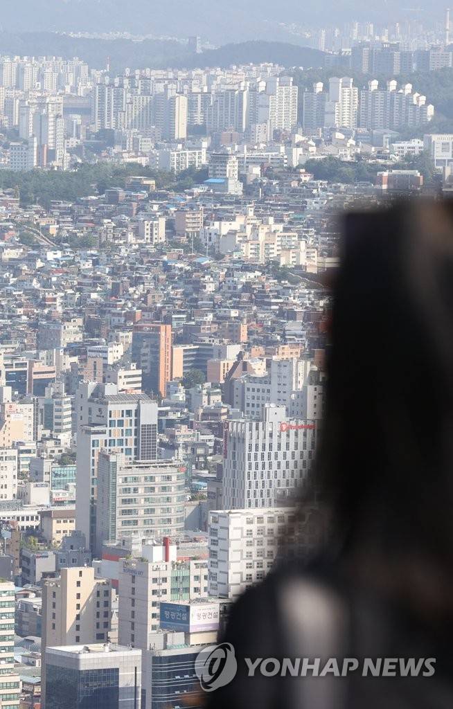 (서울=연합뉴스) 강민지 기자 = 추가 금리 인상 예고와 집값 하락세로 이번주 서울 아파트 매매수급지수는 지난주(80.2)보다 낮은 79.5를 기록하며 지수 80선이 무너졌다. 사진은 23일 서울 남산에서 본 서울 아파트. 2022.9.23
