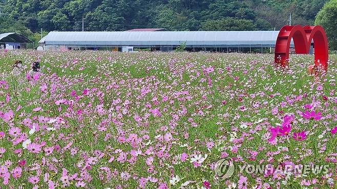 (원주=연합뉴스) 이재현 기자 = 23일 강원 원주시 판부면 서곡리 일원에서 펼쳐지는 2022 원주 용수골 가을꽃 축제장을 찾은 방문객들이 꽃밭을 거닐며 가을을 만끽하고 있다. 2022.9.23
