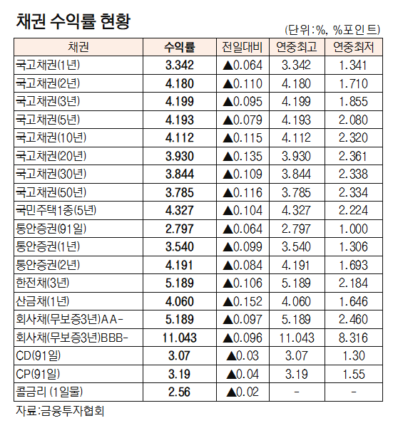 [데이터로 보는 증시]채권 수익률 현황( 9월 23일)