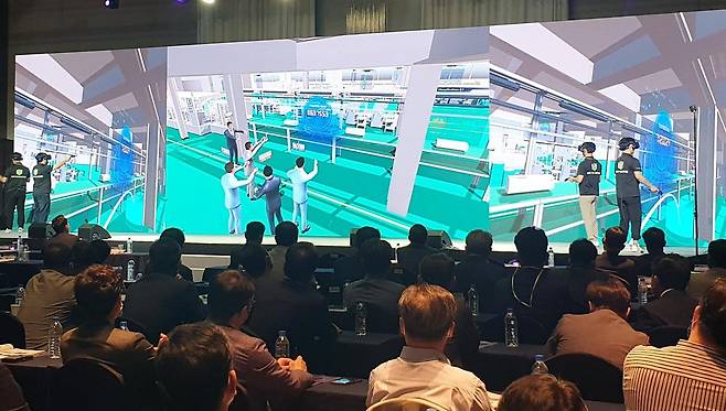 (창원=연합뉴스) 23일 경남 창원 그랜드 머큐어 앰배서더 호텔에서 '3D 산단 디지털 플랫폼 콘퍼런스'가 진행되고 있다.