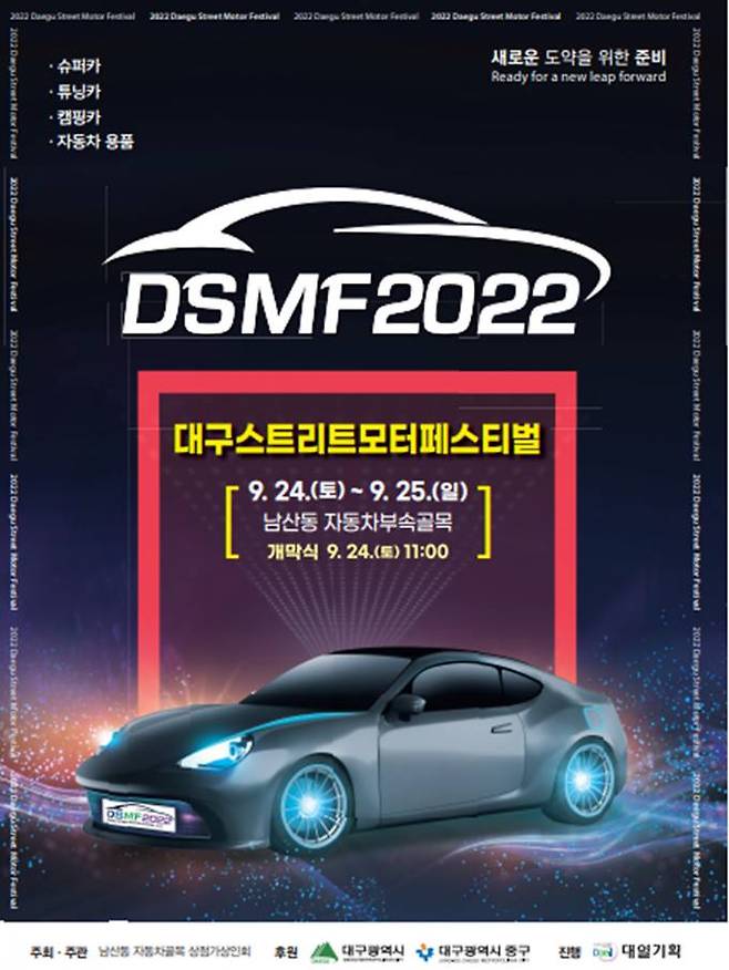 2022 대구 스트리트 모터 페스티벌이 9월 24일부터 이틀 동안 남산동 자동차부속골목에서 열립니다.