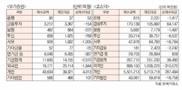 - [데이터로 보는 증시]코스피·코스닥 투자주체별 매매동향( 9월 19일-최종치)