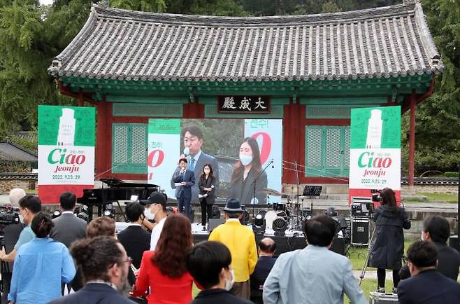‘챠오, 전주!’라는 타이틀로 열리는 이번 이탈리아문화주간은 첫날 우범기 전주시장과 페레디코 파일라 주한 이탈리아대사 등이 참석한 가운데 전주향교에서 열린 개막 리셉션으로 서막을 열었다. 개막행사 사회는 이탈리아 출신의 유명 방송인인 알베르토 몬디씨가 맡았다.