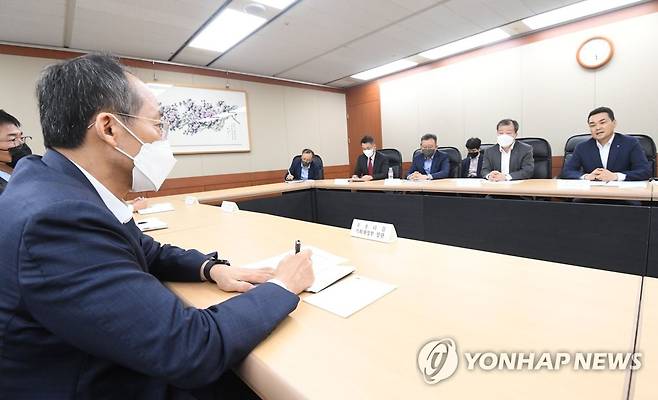 (서울=연합뉴스) 추경호 부총리 겸 기획재정부 장관이 23일 오후 서울 중구 은행회관에서 '최근 외환·금융시장 동향과 리스크 점검 및 대응 방안'을 논의하기 위해 열린 관계자들과의 간담회를 주재하고 있다. 2022.9.23 [기획재정부 제공. 재판매 및 DB 금지]