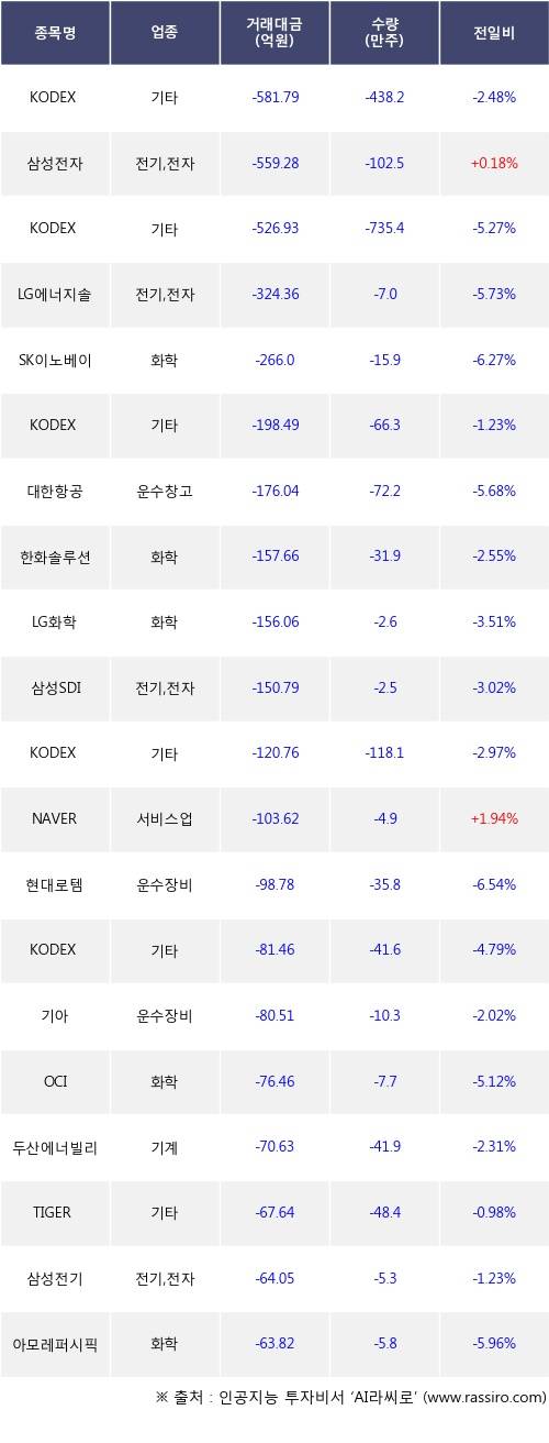 [09월23일]거래소 기관 순매도 상위 종목