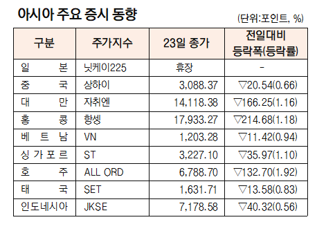 [데이터로 보는 증시]아시아 주요 증시 동향( 9월 23일)