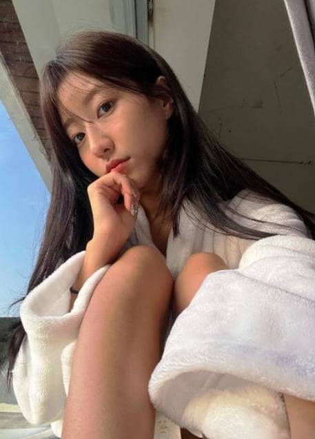 공개된 사진 속 안예원은 하얀색 가운을 걸치고 편안함을 추구했다.