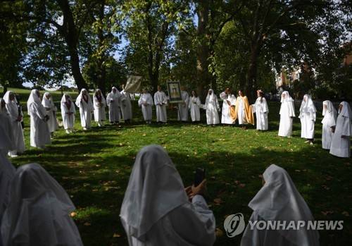 epa10201373 Members of The Druid Order perform a ceremony to celebrate the autumn equinox on Primrose Hill in London, Britain 23 September 2022. The autumnal equinox is when day and night are approximately equal in length and marks the beginning of autumn. EPA/NEIL HALL