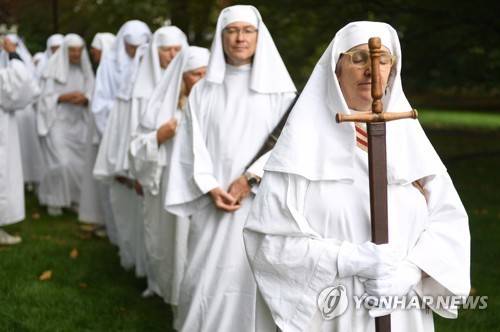 epa10201393 Members of The Druid Order perform a ceremony to celebrate the autumn equinox on Primrose Hill in London, Britain 23 September 2022. The autumnal equinox is when day and night are approximately equal in length and marks the beginning of autumn. EPA/NEIL HALL