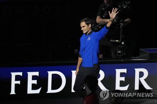 Team Europe's Roger Federer of Switzerland, waves during the opening ceremony of the Laver Cup tennis tournament at the O2 in London, Friday, Sept. 23, 2022. (AP Photo/Kin Cheung)