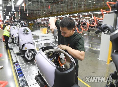 (220923) -- CHONGQING, Sept. 23, 2022 (Xinhua) -- Workers work at Yadea Group's intelligent production base of electric scooters in Yongchuan District of southwest China's Chongqing, Sept. 22, 2022. In recent years, Yongchuan District of Chongqing has focused on the development of smart manufacturing which features integrated industrial Internet, big data, artificial intelligence. Smart manufacturing has now become a new growth driver for the local economy. (Xinhua/Wang Quanchao)