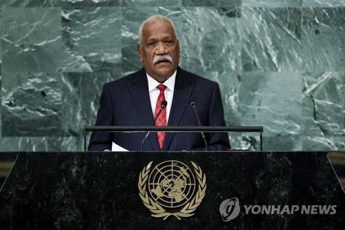 President of Vanuatu Nikenike Vurobaravu addresses the 77th session of the United Nations General Assembly, Friday, Sept. 23, 2022, at the U.N. headquarters. (AP Photo/Julia Nikhinson)