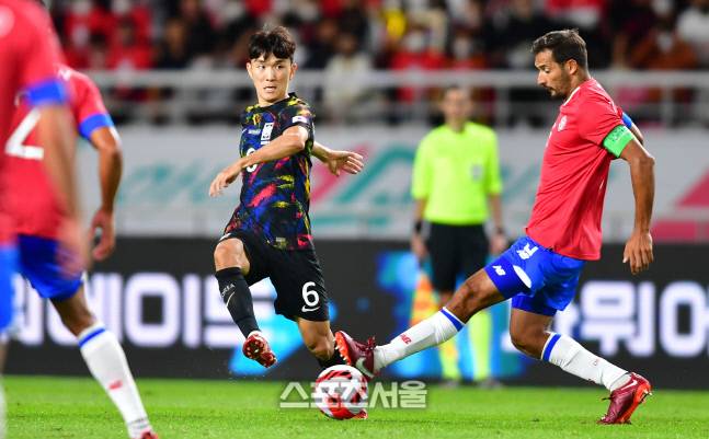 대표팀 황인범이 23일 고양종합운동장에서 열린 대한민국과 코스타리카의 평가전에서 돌파를 시도하고 있다.