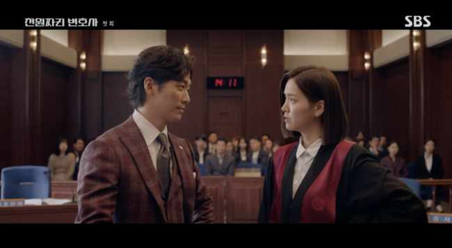 23일 첫 방송된 SBS 금토드라마 '천원짜리 변호사'(연출 김재현, 신중훈, 극본 최수진, 최창환')에서는 변호사 천지훈(남궁민 분)과 검사 시보 백마리(김지은 분)가 서로 못 잡아 먹어 안달인 케미를 보였다.