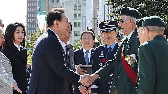 윤석열 대통령은 23일(현지시간) 오전 캐나다 수도 오타와에서 현지 한국전쟁 참전용사들이 참석한 가운데 전쟁기념비를 참배했습니다.