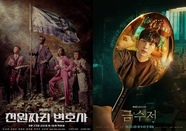 한편 '천원짜리 변호사'는 ‘갓성비 변호사’ 천지훈이 빽 없는 의뢰인들의 가장 든든한 빽이 되어주는 통쾌한 변호 활극이다. '금수저'는 가난한 집에서 태어난 아이가 우연히 얻게 된 금수저를 통해 부잣집에서 태어난 친구와 운명을 바꿔 후천적 금수저가 된 인생 어드벤처 이야기다. (사진=SBS '천원짜리 변호사', MBC '금수저' 포스터)