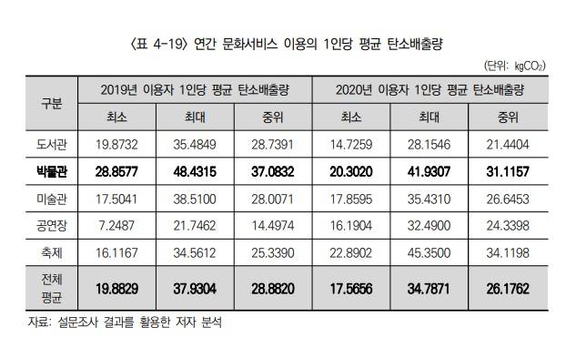 한국문화관광연구원의 장훈 연구원은 "현재로서는 어떤 지표를 친환경의 척도로 삼을지조차 결정돼 있지 않다"며 "문화 시설의 친환경 실천을 가능하게 만들기 위해서는 문체부 등 정부 기관에서 친환경 실천 방안에 대한 정책을 세우고 구체적인 안내를 제공해야 한다"고 말했다.