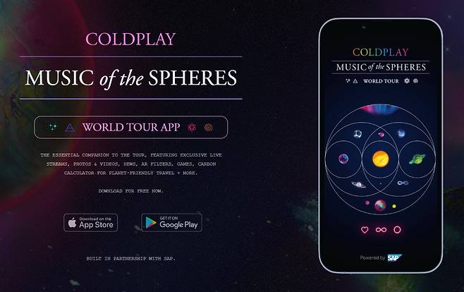 | ▲ 콜드플레이 홈페이지 앱 다운로드 화면 |