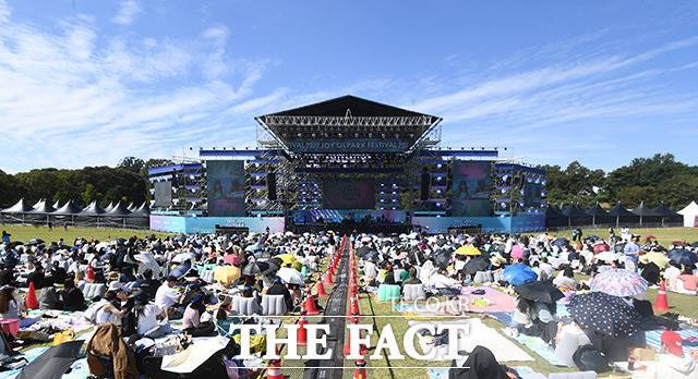 [더팩트ㅣ이동률 기자] '2022 조이올팍페스티벌'이 25일 오후 서울 송파구 올림픽공원 88잔디마당에서 열린 가운데 관객들이 공연을 감상하고 있다.