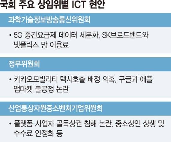 ICT 업계는 국회 과학기술정보방송통신위원회(과방위)는 물론 정무위원회, 산업통상자원중소벤처기업위원회(산자위), 국토교통위원회(국토위), 문화체육관광위원회(문체위) 국감 증인 논의에 촉각을 곤두세우고 있다.