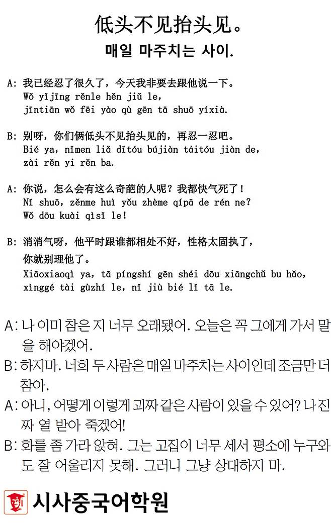 [시사중국어학원의 리얼 중국어 회화] 매일 마주치는 사이.