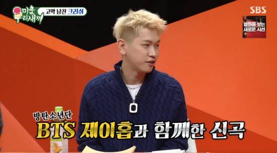 이날 신동엽은 "이번에 신곡이 발매가 되는데 어마어마한 분이 도와줬다더라"라며 말문을 열었고, 크러쉬는 "맞다. 이번 신곡에 BTS 제이홉 님이 같이 했다. '러쉬 아워'라고"라며 밝혔다.