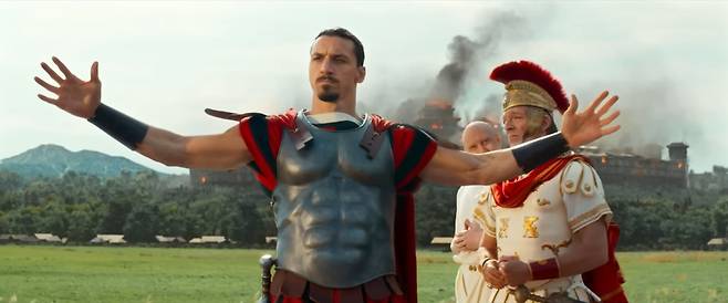 로마군에서 100인으로 구성된 부대의 대장인 켄투리오(백부장) 역할을 맡은 즐라탄은 예고편에서 로마의 장수답게 갑옷을 입고 망토를 두른 채 부하들 앞에서 연설을 하고 환호를 받았다.
