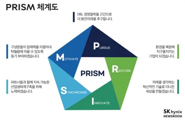 SK하이닉스는 ESG 분야의 선구자로 손꼽힌다. 지난해 'SV2030'이라는 이름으로 중장기적인 사회적 가치(SV) 극대화를 위한 로드맵을 그렸고, 올해는 보다 구체적인 목표와 비전을 담은 'PRISM'이라는 키워드 안에 녹여 넣은 ESG 전략 프레임워크를 짰다.