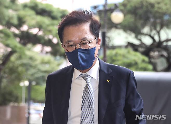 [서울=뉴시스] 정병혁 기자 = 강석훈 산업은행 회장이 26일 오후 서울 중구 은행회관에서 열린 금융위원장과 국내 18개 시중은행장 첫 만찬 간담회에 참석하고 있다. 2022.09.26. jhope@newsis.com