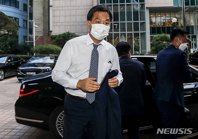 [서울=뉴시스] 정병혁 기자 = 김진균 수협은행장이 26일 오후 서울 중구 은행회관에서 열린 금융위원장과 국내 18개 시중은행장 첫 만찬 간담회에 참석하고 있다. 2022.09.26. jhope@newsis.com