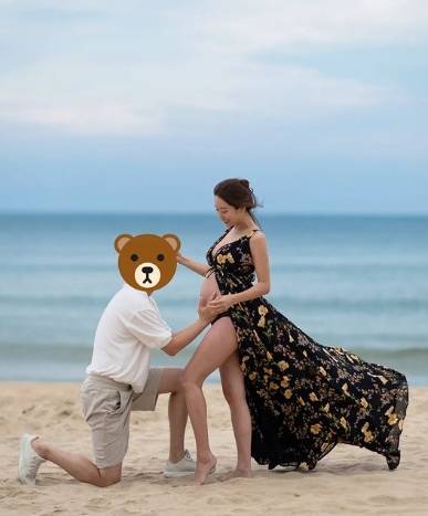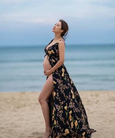 공개된 사진 속에는 10월 출산을 앞둔 전혜빈이 죽도의 한 해변에서 남편과 만삭 사진을 촬영한 모습이 담겨 있다.