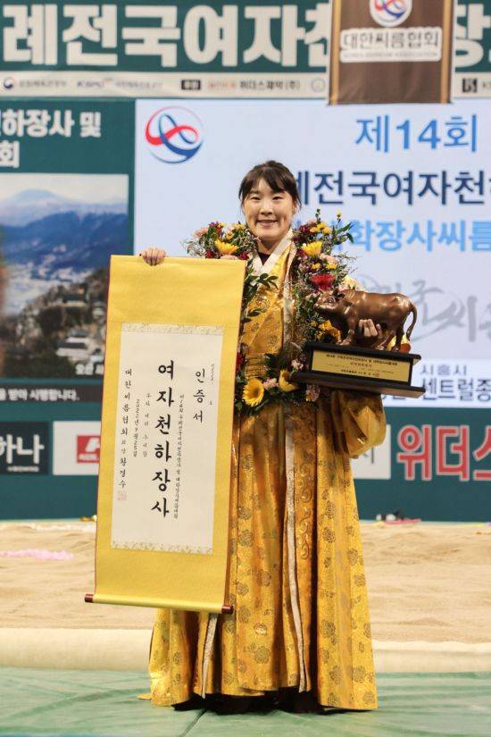 이로 인해 임수정 선수는 작년에 이어 구례여자천하장사에 등극했다.