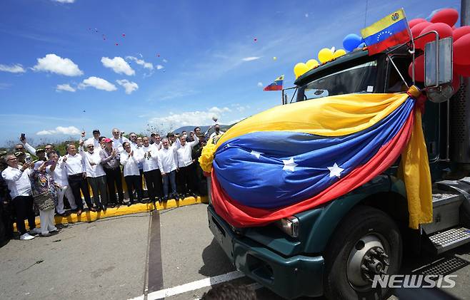시몬 볼리바르 다리 건너는 베네수엘라 트럭