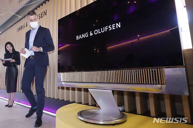 [서울=뉴시스] 최동준 기자 = 27일 서울 강남구 센트레 청담에서 열린 뱅앤올룹슨 베오사운드 시어터 런칭 행사에서 스탕코 밀루쉐브(Stanko Milushev) 아태 마켓 디렉터가 제품 소개를 하고 있다. 2022.09.27. photocdj@newsis.com