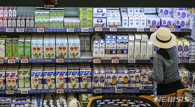 [서울=뉴시스] 김근수 기자 = 27일 오후 서울 시내의 한 대형마트에서 소비자가 물건을 고르고 있다. 전국경제인연합회가 실시한 여론조사에 따르면 올해 고물가, 고금리, 고환율로 인해 국민 10명 중 6명이 상반기 대비 하반기 소비지출을 줄일 것이라고 발표했다. 2022.09.27. ks@newsis.com
