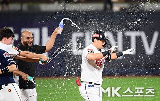 배정대 '끝내기 안타치고 시원한 물세례' [MK포토]