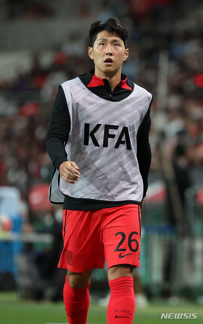 [서울=뉴시스] 백동현 기자 = 27일 오후 서울 마포구 서울월드컵경기장에서 열린 하나은행 초청 축구 국가대표 평가전 대한민국과 카메룬의 경기 후반전, 이강인이 몸을 풀고 있다. 2022.09.27. livertrent@newsis.com