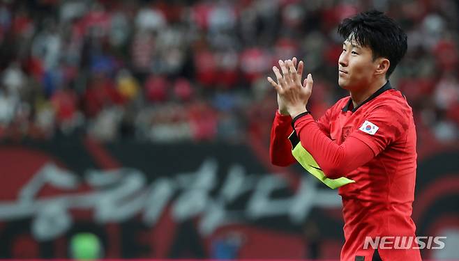 [서울=뉴시스] 조성우 기자 = 27일 오후 서울 마포구 서울월드컵경기장에서 열린 하나은행 초청 축구 국가대표 평가전 대한민국과 카메룬의 경기, 1-0으로 승리를 거둔 한국 손흥민이 팬들에게 인사하고 있다. 2022.09.27. xconfind@newsis.com