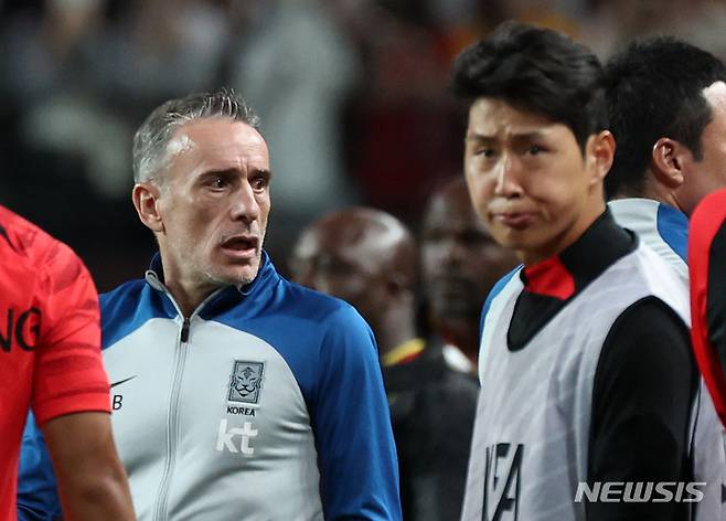 [서울=뉴시스] 백동현 기자 = 27일 오후 서울 마포구 서울월드컵경기장에서 열린 하나은행 초청 축구 국가대표 평가전 대한민국과 카메룬의 경기 종료 후 이강인이 아쉬운 표정을 짓고 있다. 2022.09.27. livertrent@newsis.com