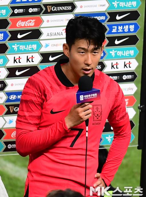 한국 손흥민이 승리 후 인터뷰를 하고 있다.