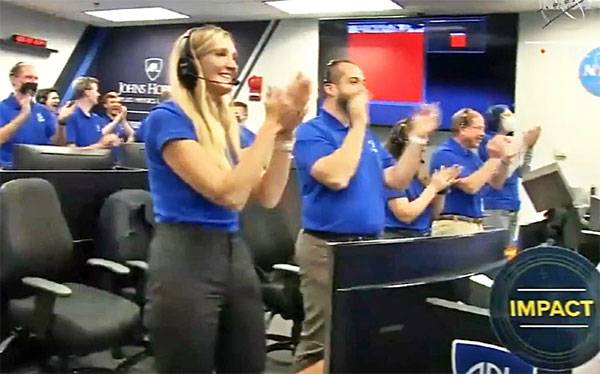 지난해 11월 발사된 미국 항공우주국(NASA)의 '쌍(雙) 소행성 궤도 수정 실험(DART)' 우주선이 약 10개월의 여정 끝에 한국시간 27일 오전 목표 소행성인 디모르포스에 충돌했다. 우주선이 소행성에 충돌하자 NASA 직원들이 박수를 치는 모습.