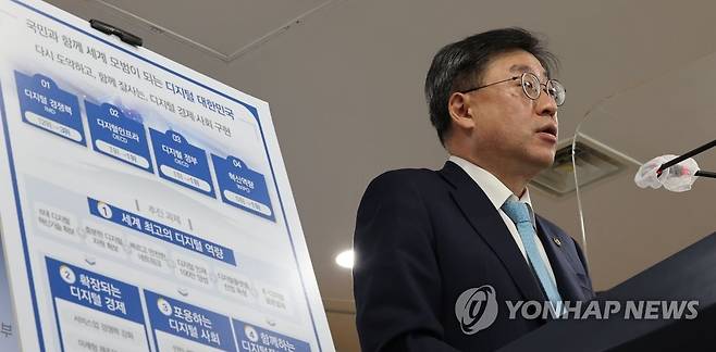 (서울=연합뉴스) 김인철 기자 = 박윤규 과학기술정보통신부 제2차관이 지난 27일 정부서울청사에서 대한민국 디지털 전략 관련 브리핑을 하고 있다. 2022.9.28