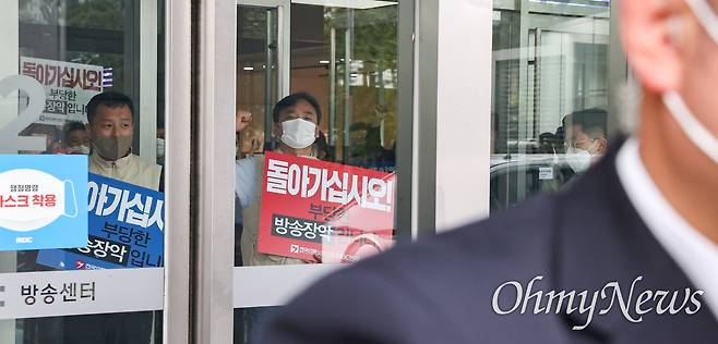 경찰들의 제지 덕분에 시민들과 국민의힘 의원들 사이에 물리적 충돌은 일어나지 않았다. 국민의힘 의원들은 약간의 실랑이 끝에 취재기자들과 함께 MBC 출입구까지 오는 데 성공했다. 하지만 유리문을 사이에 두고 안쪽에서는 MBC노조 조합원들 60여 명이 이미 진을 치고 있었다. 박대출 의원은 "회사 대표 어디 있느냐?" "박성제 사장을 만나러 왔다. 당장 이 자리에 나와라"라고 외쳤지만 호응하는 이들은 아무도 없었다. 애초에 박 사장과의 면담 등이 MBC 측과 조율되지 못한 채 일방적으로 방문한 탓이었다.