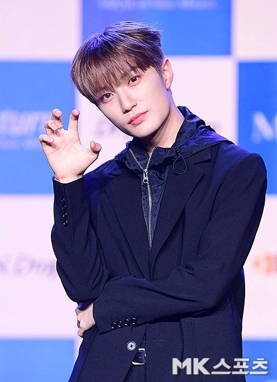 쇼케이스에 앞서 포즈를 취하는 미래소년 장유빈.