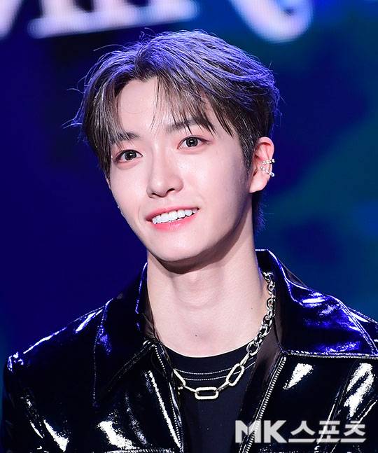 박시영이 쇼케이스 무대에서 미소를 짓고 있다.