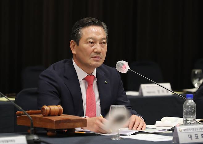 [서울=뉴시스] 김금보 기자 = 대한민국시장·군수·구청장협의회 민선8기 신임대표회장으로 선출된 조재구 대구 남구청장이 28일 오후 서울 마포구 서울가든호텔에서 열린 '대한민국시장·군수·구청장협의회 민선8기 1차년도 제1차 공동단체장회의'를 주재하고 있다. 이날 회의에는 15개 시도별 협의회장 15명이 참석, 민선8기 상반기 협의회 대표회장 등 임원진을 선출했다. 2022.09.28. kgb@newsis.com