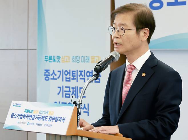[서울=뉴시스] 이정식 고용노동부 장관이 28일 서울 중구 롯데호텔에서 열린 '중소기업퇴직연금기금제도 업무협약식'에 참석해 발언하고 있다. (사진=고용노동부 제공) 2022.09.28. photo@newsis.com *재판매 및 DB 금지