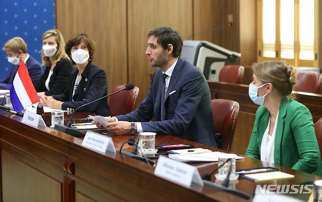 [서울=뉴시스] 배훈식 기자 = 웝크 훅스트라 네덜란드 외교장관이 28일 오후 서울 종로구 외교부 청사에서 박진 외교부 장관과 회담하고 있다. 2022.09.28. dahora83@newsis.com